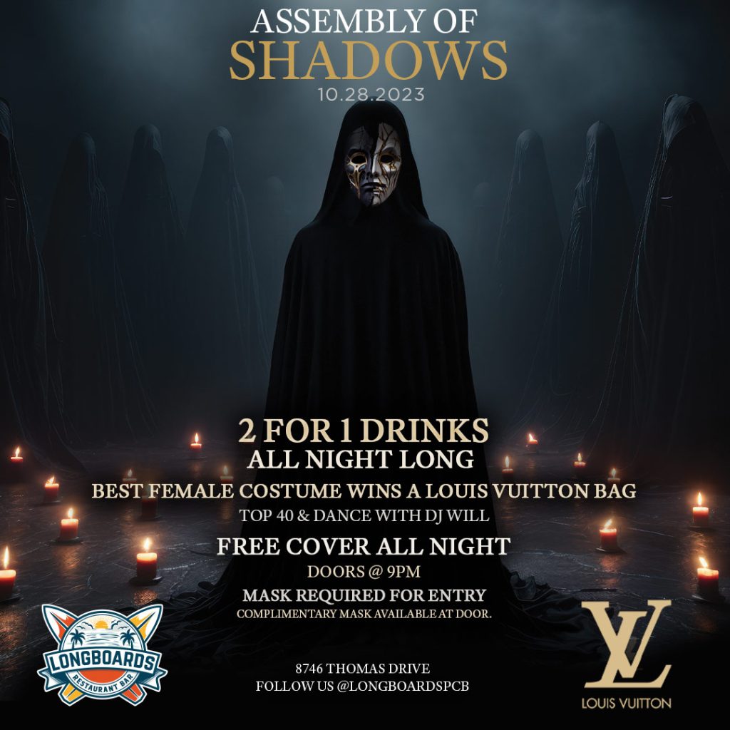 Get ready for the Halloween bash of the year at Longboards in Panama City Beach on October 28, featuring the sensational “Assembly of Shadows”! It’s a night you won’t want to miss, with all the spooktacular details to make your Halloween unforgettable.